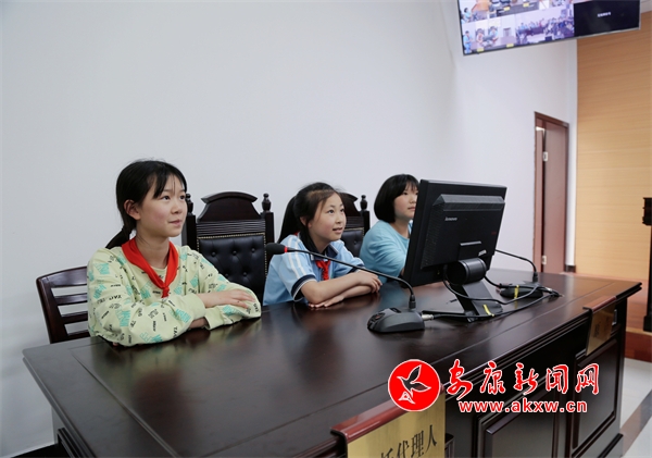 本網(wǎng)訊(通訊員 潘蕾蕾)為加強(qiáng)對(duì)未成年人的法治宣傳教育,促進(jìn)青少年健康全面發(fā)展,6月3日,石泉法院后柳法庭舉辦“‘未’你而來 法護(hù)成長“法庭開放日”活動(dòng),邀請(qǐng)后柳鎮(zhèn)中心小學(xué)40余名師生走進(jìn)法庭,參觀訴訟服務(wù)大廳、審判法庭,敲法槌、“客串”法官,“零距離”感受法庭的莊嚴(yán)。