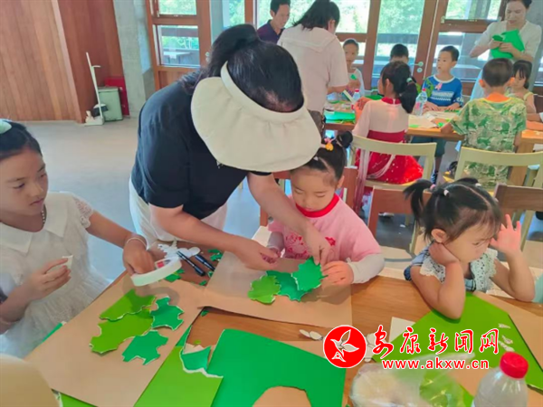 溫馨的活動室里,“愛心媽媽”們帶著滿滿的愛與關(guān)懷,與一群可愛的孩子們相聚在一起,孩子們一雙雙充滿期待的眼睛明亮而好奇地緊緊盯著“愛心媽媽”們,“愛心媽媽”溫柔地微笑著,拿起準(zhǔn)備好的彩紙、剪刀、膠水等材料,耐心地向孩子們講解今天的手工制作——蠶寶寶吃桑葉。從如何繪畫蠶寶寶,到怎樣拼剪出立體感的桑葉,“愛心媽媽”們一步步細致地示范著,孩子們?nèi)褙炞⒌伛雎、模仿著,雖然有些孩子一開始還不太熟練,但“愛心媽媽”們始終耐心地在他們身邊,一遍又一遍地重復(fù)著動作,給予鼓勵和引導(dǎo)。漸漸地,孩子們的小手開始靈活起來,他們認(rèn)真地繪畫、剪裁、粘貼著,不一會兒,一幅幅蠶寶寶吃桑葉的作品就出現(xiàn)在了他們的手中。孩子們看著自己親手創(chuàng)造的作品,臉上綻放出花朵般的笑容。
