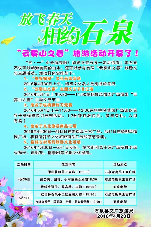 石泉云霧山云海美景想一睹云霧仙山的雄奇之美嗎?想與鬼谷文化來(lái)一次親密接觸嗎?為深入挖掘旅游文化內(nèi)涵,扎實(shí)推進(jìn)文旅融合發(fā)展步伐,4月30日-5月2日,石泉縣將……