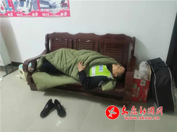 在神河中隊(duì),全體民警迅速歸隊(duì)守護(hù)一方平安。原定于正月初八結(jié)婚的崔鵬程做出推遲婚期的決定,妻子屈曼不僅支持,也在第一時(shí)間趕到了神河鎮(zhèn)中心衛(wèi)生院的工作崗位上。小崔白天負(fù)責(zé)交通要道口湖北等外來車輛的排查篩查,晚上還要加班整理各類報(bào)表,同時(shí)兼顧日常的交管業(yè)務(wù),連續(xù)多日的嚴(yán)寒導(dǎo)致其患上重感冒,為了不影響工作,屈曼在中隊(duì)辦公室為小崔掛上了點(diǎn)滴。在神河高速路口設(shè)置的檢疫站上,中隊(duì)民警路紀(jì)煒全天候值守,淋著小雨患上風(fēng)寒感冒出現(xiàn)發(fā)燒癥狀后,在同事的多次勸說下才去縣醫(yī)院檢查治療,病情稍有好轉(zhuǎn),立即向領(lǐng)導(dǎo)申請(qǐng)返回崗位。