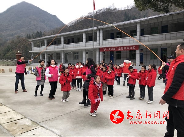 最后,共青團(tuán)安康市委書記盧存安、安康市中醫(yī)院黨委副書記、副院長胡章學(xué)和“暖流計劃”志愿者們與孩子們進(jìn)行了跳繩活動。