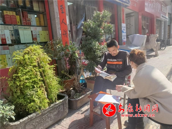 閱讀也是沈古頂?shù)囊淮髳酆谩K3W谑浙y臺旁一邊收錢,一邊閱讀。生意忙碌起來了,看書的節(jié)奏就無奈地被打斷。“讀書使人明智,我喜歡閱讀帶給我安靜舒適的感覺,鬧中取靜也是一種快樂。”沈古頂說道。