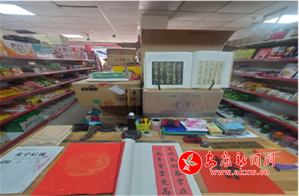 走進(jìn)店里,除了琳瑯滿目的商品外,貨架旁還放置了一張桌子,那是沈古頂日常練習(xí)書法的地方。他每天都會抽出兩到三小時練字,從不落下一天。常有老顧客向他求墨寶,他總是欣然答應(yīng),為顧客認(rèn)真寫好每幅字。近年,縣煙草公司在商戶中成立了誠信經(jīng)營互助組織,沈古頂?shù)?ldquo;字謎”隊伍更加壯大了。他不但用書法為自己筑就了一方桃花源,也在大家之間架起了一座促進(jìn)交流、建立友誼的連心橋。