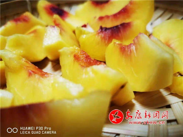 “這桃子好著呢,脆甜。這一年整地、上化肥、修枝、打藥、摘果子...都請我?guī)兔Γ夷昙o(jì)大了,出去打工也沒地兒去,一年給他們幫忙,還能掙個好幾千塊呢!”正在砍草的村民張定財說道。