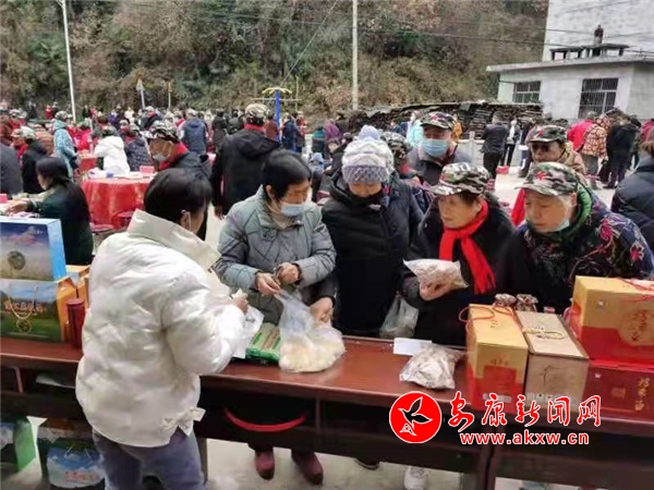本網(wǎng)訊(通訊員 李響)12月的旬陽市桐木鎮(zhèn)涌泉村,陣陣寒風(fēng)帶來入冬的寒意,小河潺潺的流水伴隨裊裊炊煙,盡顯一片祥和幽靜的山村景象。13日,小山村突然熱鬧了起來,涌泉村群眾活動(dòng)廣場(chǎng)上人頭攢動(dòng),熱鬧非凡,紅艷艷的干辣椒、金燦燦的干黃花、亮晶晶的手工魔芋……這些地地道道的農(nóng)家土特產(chǎn)依次整齊排列,現(xiàn)宰的土豬、農(nóng)家的臘肉、本地的山核桃、香甜的土蜂蜜,映入眼簾的是琳瑯滿目。今天是涌泉村舉辦農(nóng)產(chǎn)品展銷會(huì)的日子,家家戶戶都早早地帶上家里的農(nóng)產(chǎn)品來選攤位了,希望能賣個(gè)好價(jià)錢。