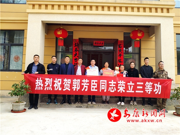本網(wǎng)訊(通訊員 馬安奎)3月14日,旬陽市退役軍人事務(wù)局和關(guān)口鎮(zhèn)人民政府工作人員一起前往泥溝村一組現(xiàn)役軍人郭芳臣家中,為其家屬送上了“三等功”喜報(bào)及慰問金。