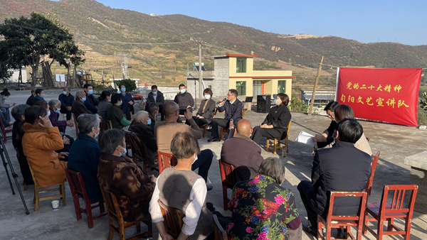 報告會后,安康市委宣講團還深入白柳鎮(zhèn)老龍溝村,與群眾面對面互動交流。旬陽文藝宣講隊在現(xiàn)場表演節(jié)目對口快板《二十大精神指航向》《禮贊旬陽頌黨恩》、二重唱《黨的二十大精神領(lǐng)航程》等節(jié)目,將黨的二十大精神直觀、生動地展現(xiàn)在群眾面前,讓基層宣講沾泥土、接地氣,推動黨的二十大精神走進千家萬戶。