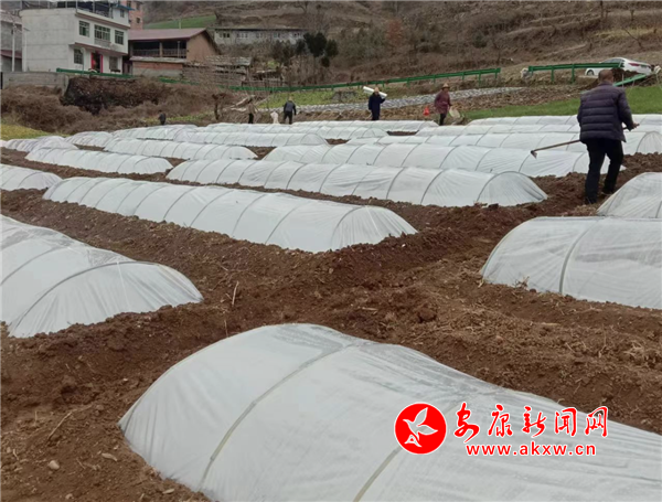 走進梨灣村的烤煙育苗基地,煙農們分工合作,正忙著拌土、澆水、撒種、打拱、覆膜……一派熱火朝天的繁忙景象。