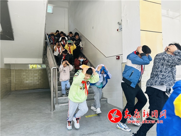 片刻之后,要求師生疏散撤離教學(xué)樓的指令發(fā)出,各班學(xué)生在老師的組織下沿指定路線撤離。行進(jìn)中,大家降低身體重心躬身前行,有的用雙手捂住頭部,有的用書本遮蓋頭頂,以最快的速度向安全疏散點(diǎn)轉(zhuǎn)移,整個疏散撤離過程快速而有序,僅用時1分40秒,600余名師生便安全撤離至學(xué)校操場,實現(xiàn)了預(yù)期演練目標(biāo)。