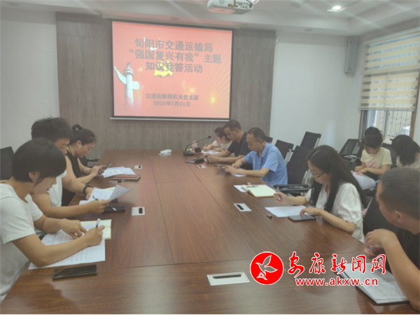 本網(wǎng)訊 為深入學(xué)習(xí)貫徹黨的二十大精神,深化“強(qiáng)國復(fù)興有我”群眾性主題宣傳教育活動(dòng),進(jìn)一步激發(fā)系統(tǒng)黨員群眾愛黨、愛國熱情,教育引導(dǎo)黨員群眾堅(jiān)定理想信念,凝聚奮進(jìn)力量,筑牢初心使命;激發(fā)黨員群眾干事創(chuàng)業(yè)激情,牢固樹立高質(zhì)量項(xiàng)目建設(shè)和高品質(zhì)運(yùn)輸服務(wù)“雙高”理念。近日,旬陽市交通運(yùn)輸局結(jié)合主題黨日活動(dòng),突擊組織機(jī)關(guān)30余名黨員干部開展“強(qiáng)國復(fù)興有我”主題宣傳教育知識競答活動(dòng)。