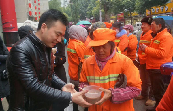 天冷降溫,室外寒冷,環(huán)衛(wèi)工人更是辛苦。旬陽南方百貨攜手旬陽南方商務(wù)酒店,在這個(gè)寒冷的日子,在這個(gè)中國傳統(tǒng)的臘八節(jié),為辛勞的城市衛(wèi)士送上一碗熱熱的臘八粥……