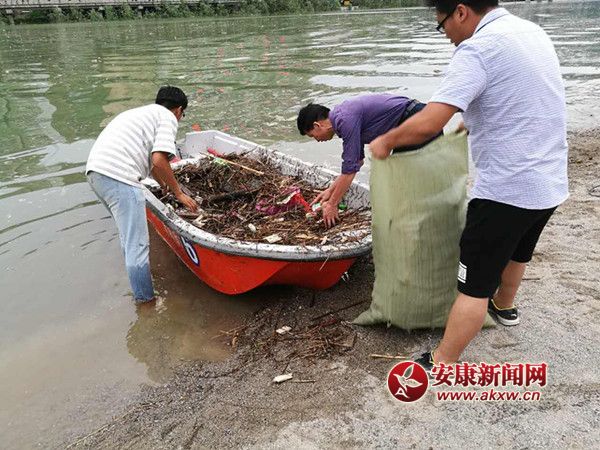 安康新聞網(wǎng)訊(通訊員 王力)7月9日,旬陽縣濱河公園,頂著烈日打撈旬河漂浮垃圾,旬陽縣防汛辦工作人員及漢江綜治辦工作人員 !