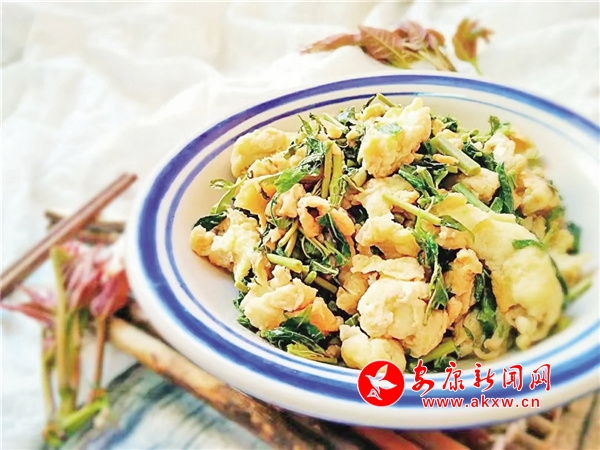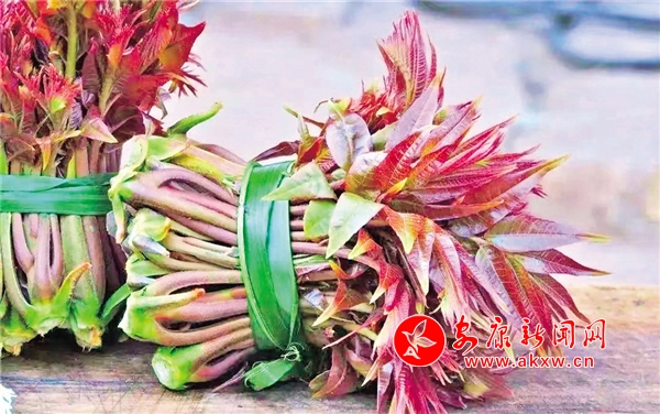 香椿 春天必吃的一道時令菜。香椿又叫做椿芽、春尖葉,香椿初發(fā)芽長葉的時候,掐香椿頭拿來做成香椿炒雞蛋吃,吃在嘴里脆嫩新鮮,味美爽口,齒頰俱芬。鎮(zhèn)坪的香椿響當(dāng)當(dāng)?shù)那嗄塾形,紅得發(fā)紫的葉芽,閃著點兒油光,看起來就很好吃。