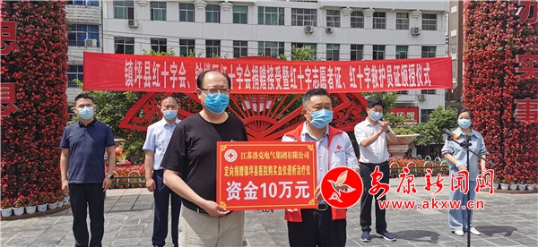 活動中,鐘樓區(qū)紅十字會將江蘇洛克電氣集團有限公司向縣醫(yī)院定向捐贈了10萬元血液透析儀專項資金捐給鎮(zhèn)坪縣醫(yī)院,常州市中輝文化產(chǎn)業(yè)發(fā)展有限公司捐贈了口罩10萬只,用于支持鎮(zhèn)坪縣醫(yī)療衛(wèi)生事業(yè)和疫情防控工作。并為10名代表頒發(fā)紅十字志愿者證和紅十字救護員證,儀式議程完成,與會人員參觀了鎮(zhèn)坪縣志愿服務中心。