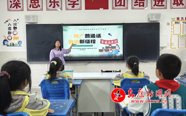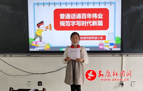 在課間,學(xué)校師生以具體形象、通俗易懂的語(yǔ)言,詮釋了自己對(duì)普通話和規(guī)范簡(jiǎn)化字的認(rèn)識(shí)。在主題班會(huì)上,各班借助PPT、宣教片等形式向?qū)W生科普了普通話的由來(lái)、普通話水平等級(jí)、不規(guī)范簡(jiǎn)化字、《通用語(yǔ)言文字法》的解讀、文學(xué)名著中的偏僻字音等知識(shí),號(hào)召大家“講普通話,寫規(guī)范字”,積極主動(dòng)地弘揚(yáng)民族語(yǔ)言文化。