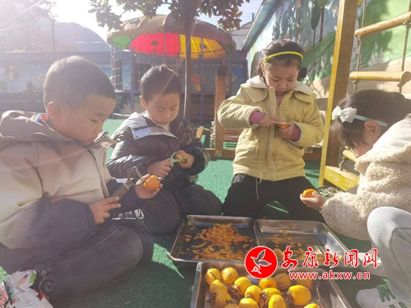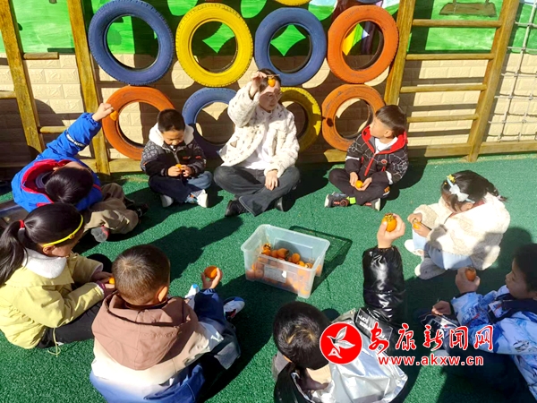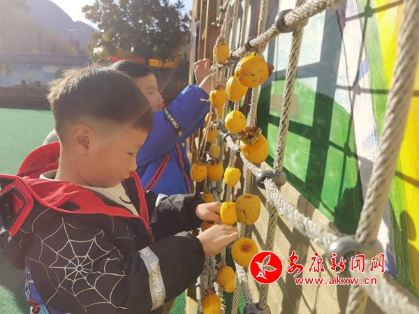 了解了柿子后,一起出發(fā)去采摘吧,孩子們在老師的帶領下興高采烈地來到柿子樹下,有的摘柿子、有的接柿子、有的放柿子,大家配合得非常默契,忙得不亦樂乎,看到這樣一番熱鬧的場景,老師也來幫忙,幫孩子們摘下他們夠不到的柿子。