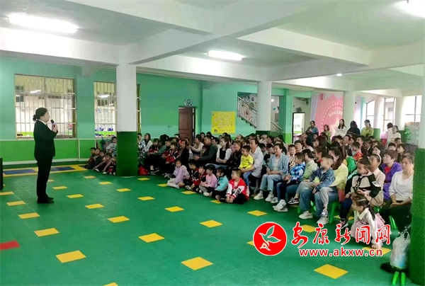 紅椿法庭從小朋友的年齡特點(diǎn)出發(fā),通過播放動(dòng)畫片《小豬佩奇》的形式向小朋友們宣講法律知識(shí),并將動(dòng)畫故事與現(xiàn)實(shí)案例相結(jié)合,從動(dòng)畫中提煉法律知識(shí),通過看、問、答的形式讓小朋友們?cè)跉g樂輕松的氛圍中增長(zhǎng)了法律知識(shí)。現(xiàn)場(chǎng)以法徽為切入點(diǎn),通過觸摸觀察、問答互動(dòng)等方式,從法徽的組成部分向小朋友們介紹了法徽的含義以及“法是什么”“法院又是干什么的”,讓小朋友們零距離地感受到了“法”。此外,還通過宣講和發(fā)放宣傳手冊(cè)等方式向到場(chǎng)的家長(zhǎng)們普及了有關(guān)“監(jiān)護(hù)人責(zé)任”方面的法律知識(shí),讓學(xué)生家長(zhǎng)充分認(rèn)識(shí)到保障未成年人合法權(quán)益需要大家共同努力。