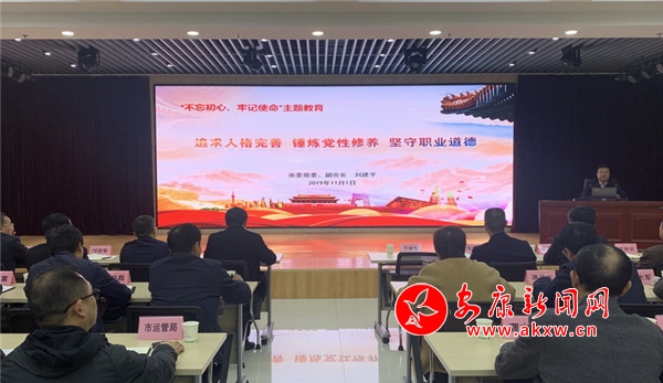 本網(wǎng)訊 11月1日下午,市委常委、副市長(zhǎng)劉建平結(jié)合“不忘初心、牢記使命”主題教育,以“追求人格完善、錘煉黨性修養(yǎng)、堅(jiān)守職業(yè)道德”為題,為分管部門黨員干部講黨課。市交通運(yùn)輸局、市衛(wèi)健委、市醫(yī)保局及下屬單位共70余名黨員干部現(xiàn)場(chǎng)聆聽。