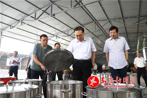 在澗池鎮(zhèn)馬鞍橋村,王剛與鎮(zhèn)村干部、合作社負(fù)責(zé)人深入交談。馬鞍橋村與處在澗池集鎮(zhèn)的西壩村通過“四聯(lián)”工作法結(jié)對后,積極打造村集體經(jīng)濟(jì)“聯(lián)創(chuàng)”產(chǎn)業(yè)園和合作社,取得了顯著成效。他充分肯定了“四聯(lián)”工作法,并強(qiáng)調(diào)馬鞍橋村要堅(jiān)持黨建引領(lǐng),立足當(dāng)?shù)刭Y源推進(jìn)整合,使各類資源得到更充分的循環(huán)利用,進(jìn)一步探索完善機(jī)制,研究困難和問題,爭創(chuàng)后扶產(chǎn)業(yè)發(fā)展新標(biāo)桿,形成黨建引領(lǐng)、抱團(tuán)發(fā)展、整體提升的鄉(xiāng)村振興新動能。