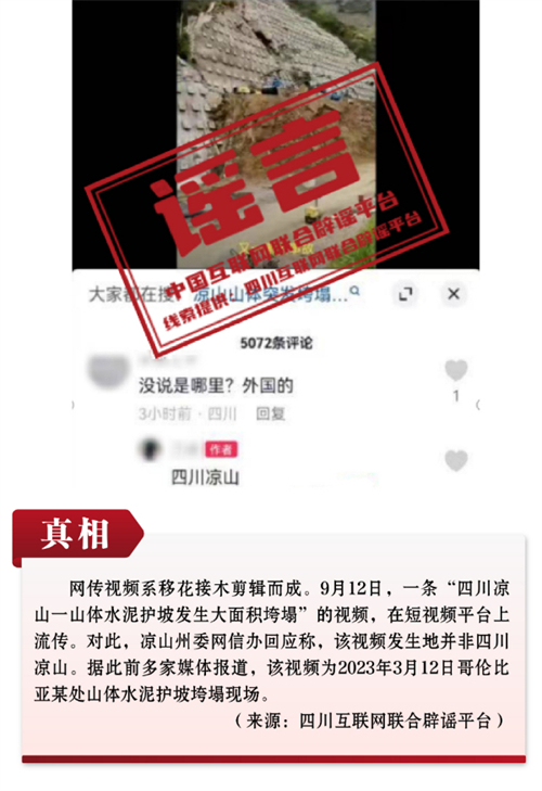 謠言7:四川涼山一山體護(hù)坡發(fā)生大面積垮塌?