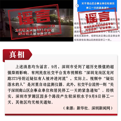 謠言6:深圳市超強(qiáng)降雨期間龍崗區(qū)龍河路有人被沖進(jìn)河流?南山區(qū)停工一天?