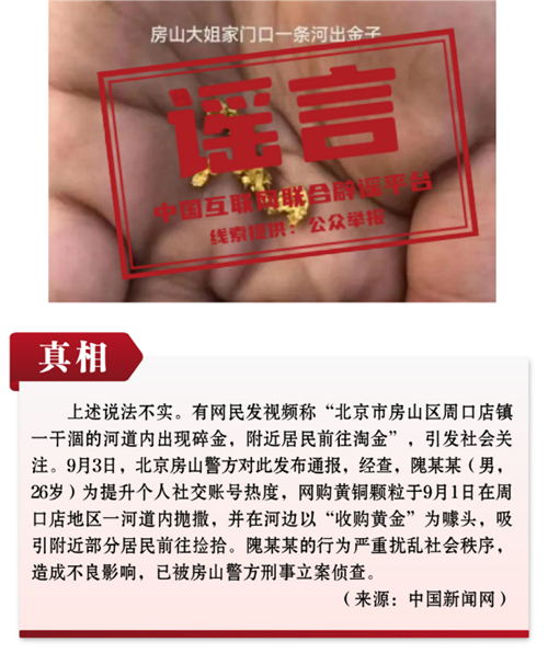 謠言4:北京市房山區(qū)一河道內(nèi)驚現(xiàn)碎金?