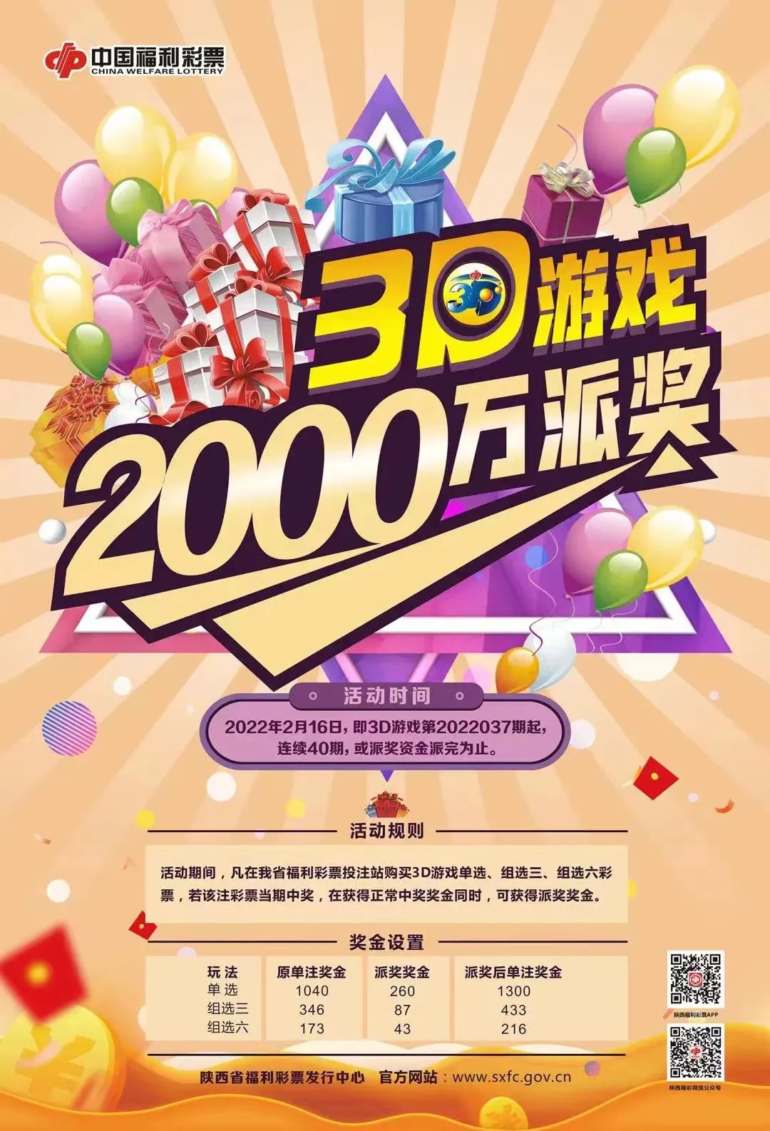 為回饋廣大購彩者對3D游戲的支持和厚愛,省福彩中心決定恢復(fù)開展原定于2021年12月25日受疫情影響未能如期開展的3D游戲2000萬元派獎活動。