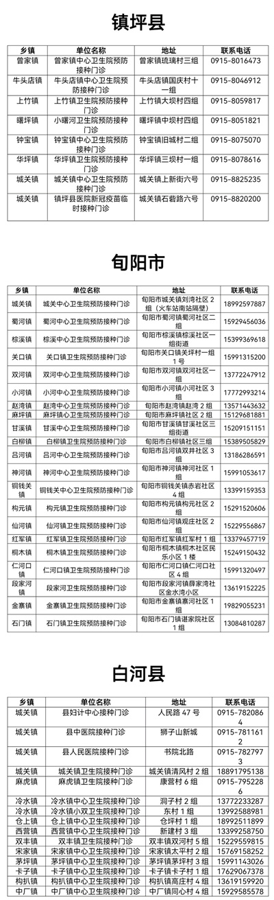答:目前安康各鄉(xiāng)鎮(zhèn)、社區(qū)預防接種門診均可接種新冠疫苗,具體接種點位附后。