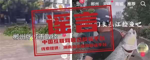 7月28日,某短視頻平臺出現(xiàn)兩段視頻,一段是城市街道被洪水淹沒并配文“郴州版城市取經(jīng)”的視頻;另一段是暴雨過后在積水中抓魚并配文“友友們來東江撿魚吧”的視頻。經(jīng)湖南郴州網(wǎng)信部門核實,相關(guān)視頻系網(wǎng)民惡意拼湊,郴州并未出現(xiàn)視頻所述情況。網(wǎng)信部門已將謠言線索移交公安部門依法處置。