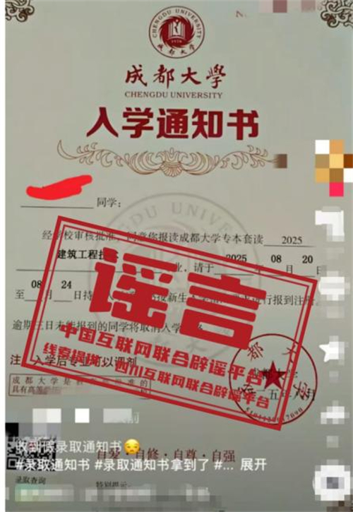 教育部多次提醒,部分機構(gòu)和個人打著普通高等學(xué)歷教育幌子,實際卻為自考助學(xué)、網(wǎng)絡(luò)教育等其他教育形式,或進行虛假宣傳。如未通過高考招生錄取獲得正式通知書,無法注冊普通高校正式學(xué)籍,也無法取得普通高等學(xué)校學(xué)歷證書?忌凹议L應(yīng)通過正規(guī)渠道核驗錄取信息,嚴格保護個人信息,防止被不法分子利用。(來源:四川互聯(lián)網(wǎng)舉報辟謠平臺、成都網(wǎng)絡(luò)辟謠)