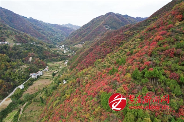 初冬時(shí)節(jié),地處秦嶺南麓的漢濱區(qū)早陽(yáng)鎮(zhèn)境內(nèi),滿山的紅葉把山村裝扮得美如一幅畫(huà),引得眾多游客和市民來(lái)這里賞紅葉、觀美景,盡享生態(tài)之美。圖為無(wú)人機(jī)視角下的早陽(yáng)紅葉美景。 (通訊員 周濤) Kmu安康新聞網(wǎng)