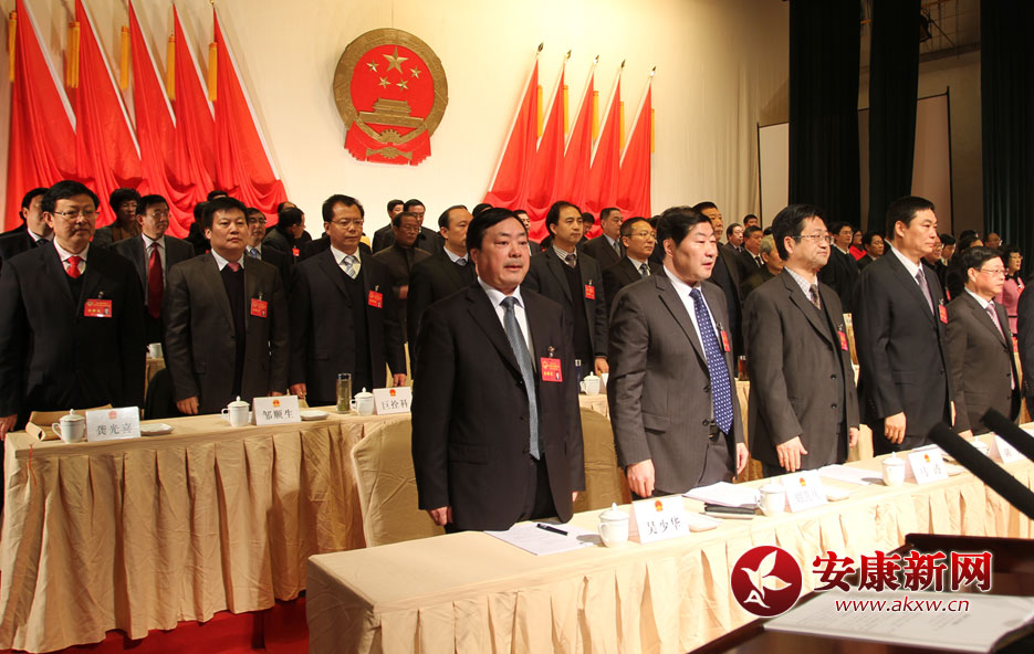 全體起立高唱國(guó)歌,政協(xié)第三屆安康市委員會(huì)第四次會(huì)議勝利閉幕。
