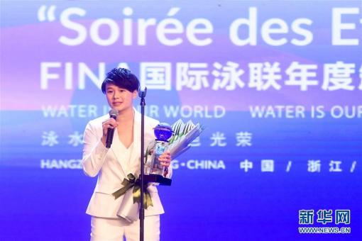 12月16日,中國運(yùn)動員施廷懋在獲得國際泳聯(lián)2018年度跳水最佳女子運(yùn)動員獎后發(fā)表感言。 當(dāng)日,2018年度國際泳聯(lián)頒獎盛典在浙江杭州舉行。 新華社記者黃宗治攝……