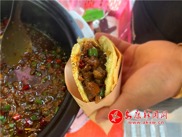 “馬馬米線”每天只做夜市場,營業(yè)時間是下午3點至晚上12點,店面雖然只有二三十平米大,但每天來的食客卻不少。米線軟硬適中、入口爽滑,澆上一勺她家特制的牛肉粒臊子,一口下去回味無窮。這時再來一個牛肉夾饃,一口米線一口饃,讓你從口腔到胃都瞬間暖暖的。