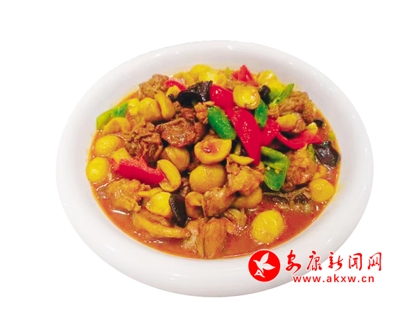 這道特色菜是把散養(yǎng)土雞洗凈剁成小塊,剝好板栗,在鍋里放菜籽油燒紅,加入少許干辣椒、花椒、豆豉炒香,再放入雞塊,大火煸炒變色,調(diào)入生抽、少許耗油、冰糖炒勻,汆入沒(méi)過(guò)雞塊的清水燒開,再放入板栗,火燜15—20分鐘,放入青紅椒調(diào)色,收汁裝盤。這道菜雞肉鮮美,板栗香甜,汁濃醇厚,色澤紅亮,真是吃貨們的口福。