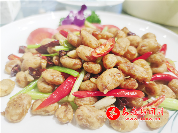 推薦理由:據(jù)廚師介紹,香辣白蕓豆是先將干的蕓豆浸泡,然后加入辣椒、香葉、蔥姜等多種調(diào)味料把蕓豆煮至熟爛,再將煮好的蕓豆裹上一層面糊下鍋炸至表皮焦黃,佐以嫩芹菜桿、香蒜和紅辣椒炒制,一道酥香可口、內(nèi)里綿軟的香辣白蕓豆就做好了。