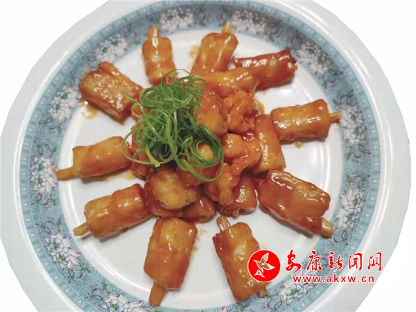 推薦理由:翡翠石榴包是一道光從外觀上看就覺得十分精美的涼菜,將蝦仁剁碎成顆粒狀,和胡蘿卜蔥末簡(jiǎn)單調(diào)味后再拌勻,用越南春卷皮包裹住,內(nèi)部的蝦仁透過晶瑩剔透的外皮滲出點(diǎn)點(diǎn)紅,看起來就極為養(yǎng)眼,夾一個(gè)沾上醋辣椒送入口中,蝦仁彈脆鮮香,外皮軟糯可口,讓人吃了還想再吃。這道菜品老少咸宜,無論是家常宴請(qǐng)還是商務(wù)接待都非常適合,值得推薦。