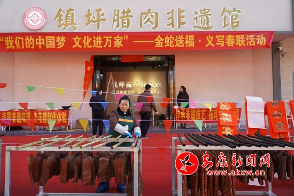 灌香腸、熏臘肉,拓祝福、寫春聯(lián)……1月5日,“鎮(zhèn)坪縣臘肉節(jié)”拉開帷幕,一大早,陜西省省級非物質(zhì)文化遺產(chǎn)生產(chǎn)性保護示范基地“鎮(zhèn)坪臘肉腌制技藝”非遺工坊——鎮(zhèn)坪縣漢巴食品有限公司門前支起了巨型大鐵鍋,燉上了500斤的臘肉、臘排、臘豬蹄和香菇、竹筍、干洋芋等輔料。鎮(zhèn)坪臘肉歷史悠久,在數(shù)百年的傳承中形成了獨特的制作工藝與文化內(nèi)涵。2013年9月11日“鎮(zhèn)坪臘肉腌制技藝”列入陜西省第四批非物質(zhì)文化遺產(chǎn)名錄。而鎮(zhèn)坪臘肉腌制非遺工坊更是被陜西省文化和旅游廳、陜西省原扶貧開發(fā)辦公室認定為陜西省第一批省級非遺扶貧就業(yè)工坊。(記者 張喬)