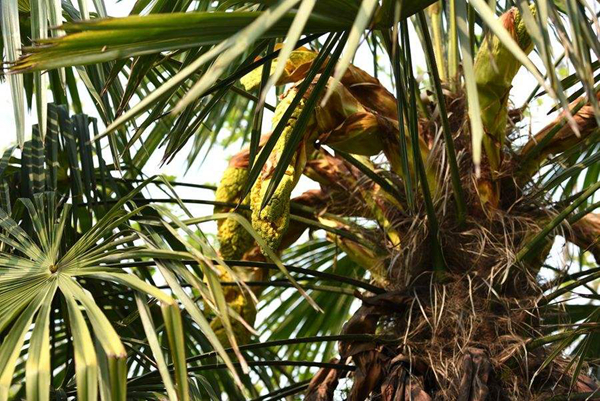 到了80年代初,當(dāng)?shù)貢r(shí)興起棕床,睡起來(lái)柔軟又有彈性,舒適又隔潮氣,家道殷實(shí)人家相繼都拆掉了稻谷草鋪就的架子床換成美觀新潮的棕床,后來(lái)我才知道,做一張床,除了木料和繩子,還得十幾塊工匠錢,記得父親在陡坡上搬樹摔了一跤腰部受損,天氣一變就不停地呻吟,姐姐便使喚我們割遍自留山的棕,勉強(qiáng)織了一張床,是夜,父親睡得很安穩(wěn)。棕樹開的花也很有特點(diǎn),花形呈佛手狀,花籽如粟米子樣金黃亮色,味道有點(diǎn)淡淡的苦,婆在世時(shí)常說(shuō)棕樹花燉豬心,娃娃吃了補(bǔ)心肺,長(zhǎng)記性,我上學(xué)時(shí)再生僻的詩(shī)文,看過(guò)一遍就爛熟于心,或許與吃過(guò)此湯不無(wú)關(guān)系,我在想,棕花入藥對(duì)治愈新冠肺炎應(yīng)該療效不錯(cuò),它也是一副神奇的中藥方劑。