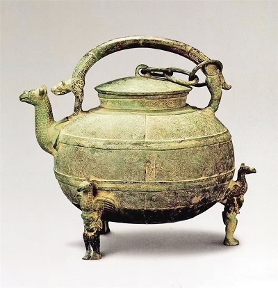 東漢許慎在《說文解字》里有言:“盉,調(diào)味也。從皿,禾聲。” 王國維在《說盉》中言:“余謂盉者,蓋和水于酒之器,所以節(jié)酒之厚薄也。”可見盉是古代酒器,是用來調(diào)和米酒,加水來沖兌酒味濃淡的。從考古發(fā)現(xiàn)看,多分布于山西、陜西、河南、江蘇、安徽等地,尤以江淮地區(qū)分布最多。西周中期以后,盉常與盤共出,說明盉的功能有所轉(zhuǎn)變,從酒器變?yōu)樗,不論作為酒器還是水器,“盉”與人們的日常生活總是密切相關(guān),它是“茶壺”的鼻祖,現(xiàn)代用的茶壺即是由它發(fā)展而來。